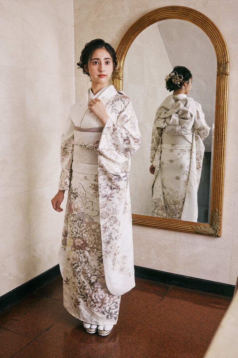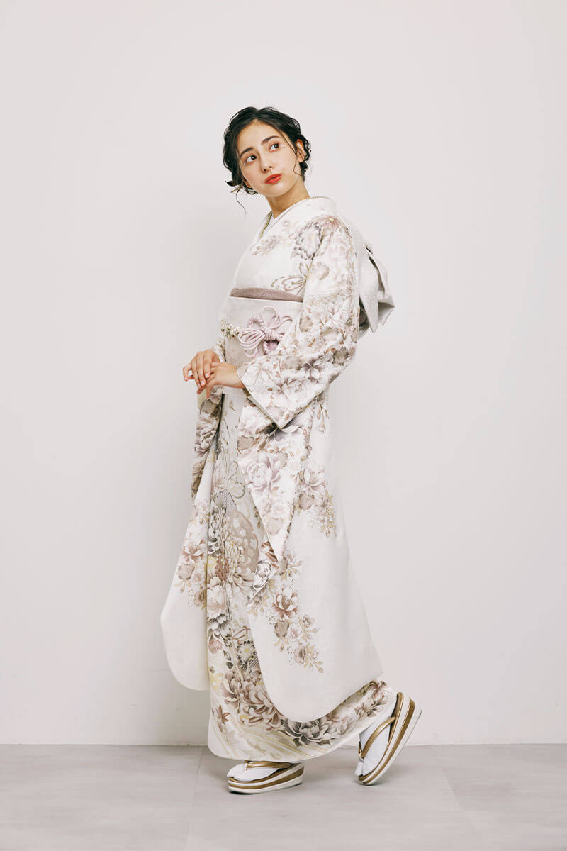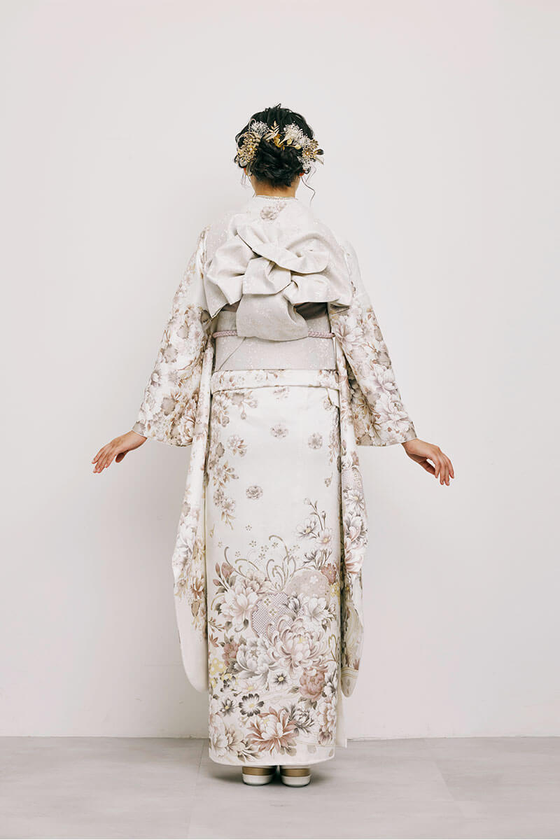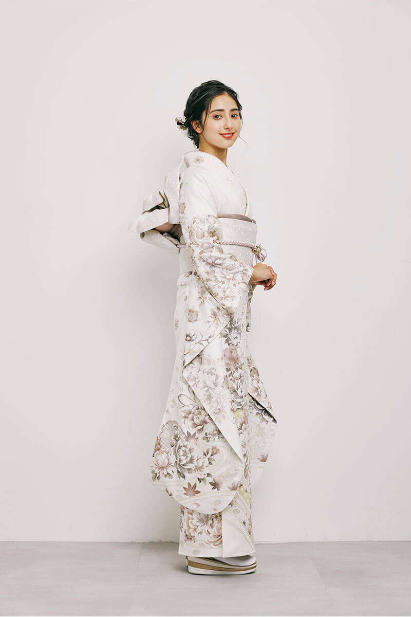※写真の帯・小物(帯締め・帯揚げ・重ね衿・刺繍衿・草履・バッグ・ショール・髪飾り・帯飾り等)は撮影用ですので、「基本コーディネート」のセット内容及び価格とは異なります。
