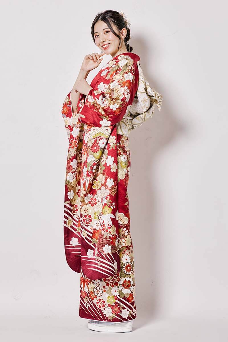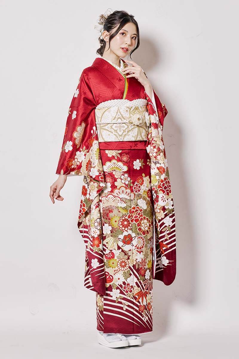 ※写真の帯・小物(帯締め・帯揚げ・重ね衿・刺繍衿・草履・バッグ・ショール・髪飾り・帯飾り等)は撮影用ですので、「基本コーディネート」のセット内容及び価格とは異なります。