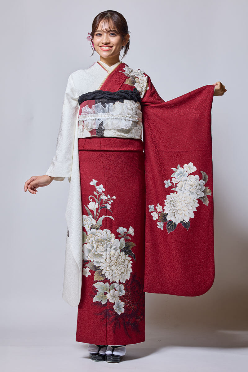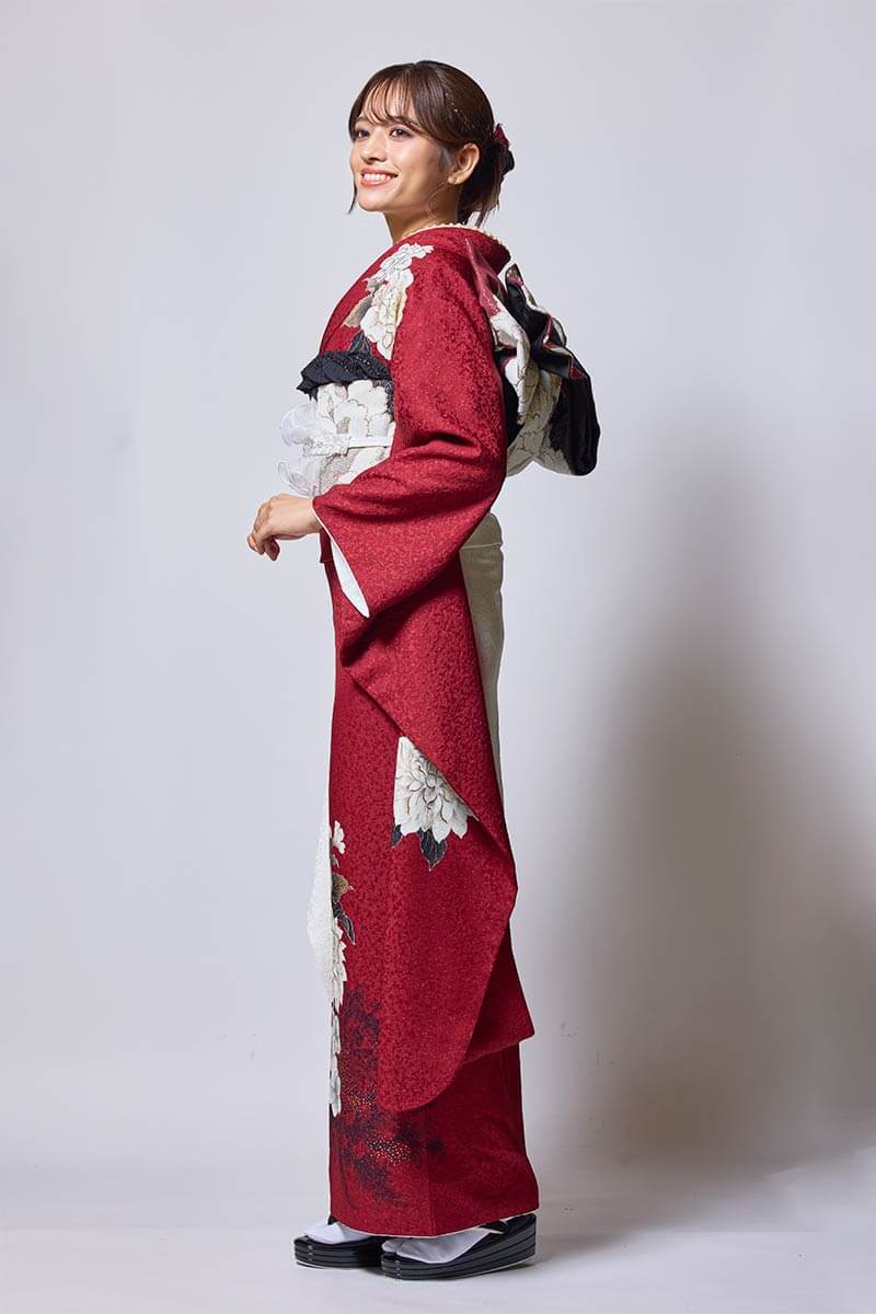 ※写真の帯・小物(帯締め・帯揚げ・重ね衿・刺繍衿・草履・バッグ・ショール・髪飾り・帯飾り等)は撮影用ですので、「基本コーディネート」のセット内容及び価格とは異なります。