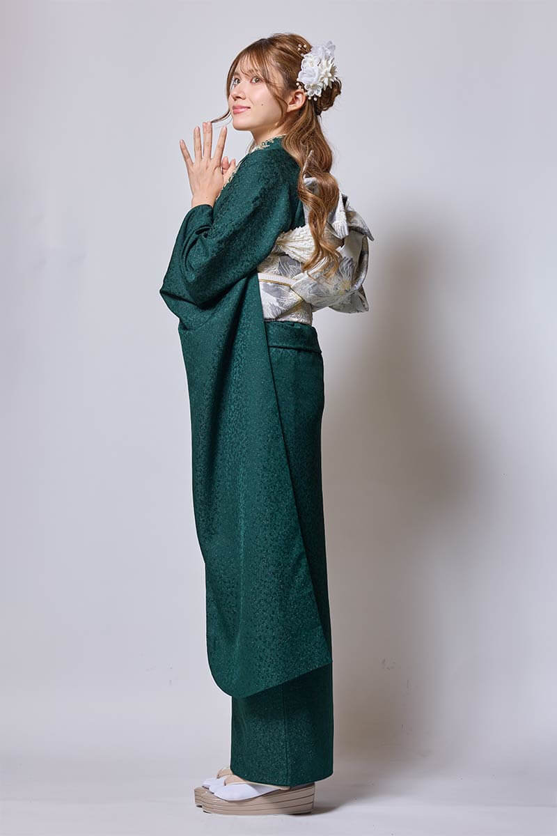※写真の帯・小物(帯締め・帯揚げ・重ね衿・刺繍衿・草履・バッグ・ショール・髪飾り・帯飾り等)は撮影用ですので、「基本コーディネート」のセット内容及び価格とは異なります。