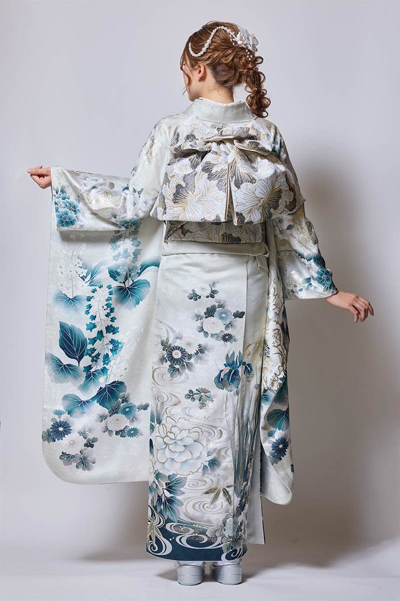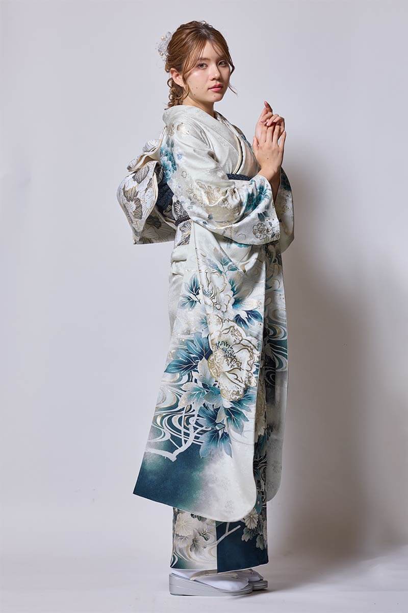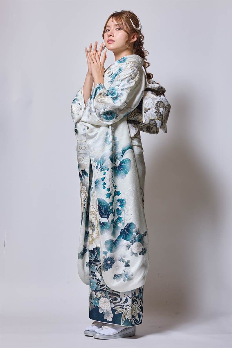 ※写真の帯・小物(帯締め・帯揚げ・重ね衿・刺繍衿・草履・バッグ・ショール・髪飾り・帯飾り等)は撮影用ですので、「基本コーディネート」のセット内容及び価格とは異なります。