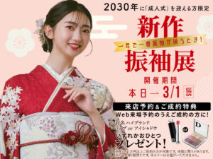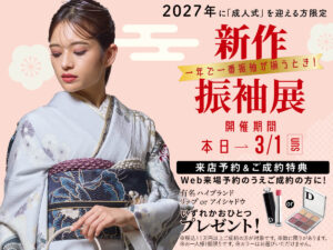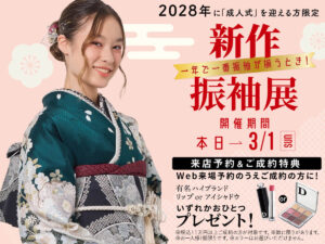 京彩海老名店は、振袖だけではなく、小物類に至るまで、どこにも負けない品揃えでお待ちしております。